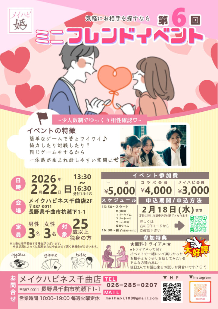※各会の定員数(男性3名 / 女性3名)に達した場合は、